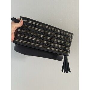 Shiraleah Dark Blue Fold Over Clutch Purse Beaded Braided Tassel Anthropologie