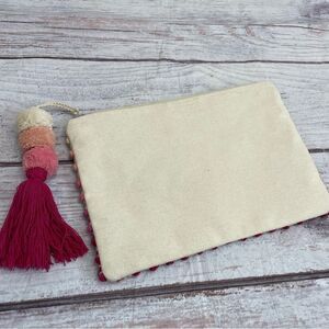 This Shiraleah Chicago zip pouch features a beautiful ombré design with textured yarn details, transitioning from natural beige to rich shades of pink and burgundy. The pouch is accented with a matching tassel and pom-pom detail, giving it a chic, bohemian touch. Perfect for holding cosmetics, small essentials, or for use as a stylish clutch, this pouch adds a vibrant pop of color and texture to your accessories collection.