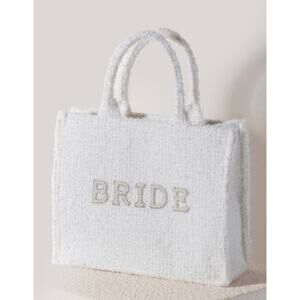 Shiraleah Wedding Day Tweed Pearl Embellished "Bride" Boucle Tote