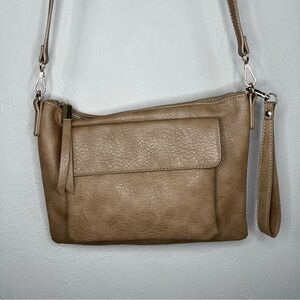 Shiraleah Light Brown Beige Faux Leather Crossbody Purse Zip Closure Neutral