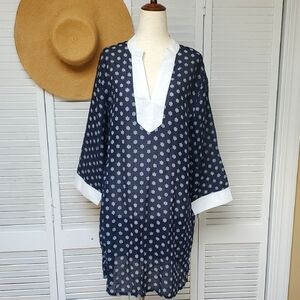 Shiraleah Navy and White Nautical Swim Coverup Tunic Size XL
