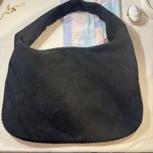 Shiraleah, hobo bag, black suede, vintage, boho chic, bohemian, grunge, Y2K fashion, early 2000s, braided detail, shoulder bag, slouchy, festival bag, indie style, pre-owned, authentic.