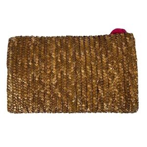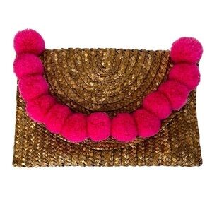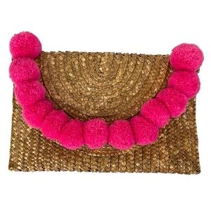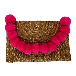 Shiraleah Women's Straw Pink Pom Pom Trim Large Clutch Handbag
