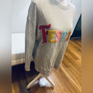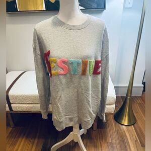 This Shiraleah 100 cotton gray sweatshirt features a vibrant 'Festive' design. Beautiful embroidered, raised detail, perfect condition, size large.