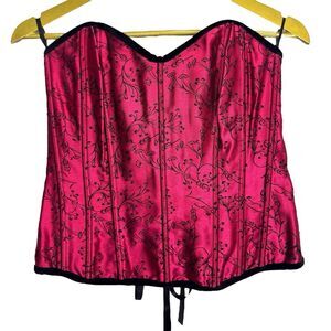 Shirley Satin Velvet Floral Lace Up Corset Top Size 34 Black Red Goth Vamp Y2K