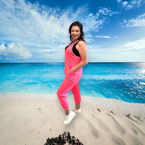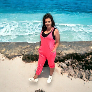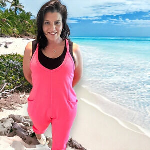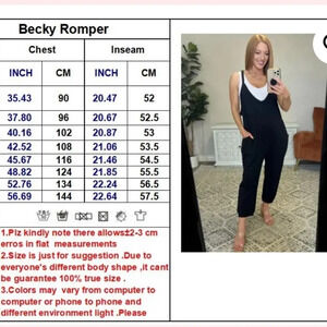 Look sharp in the Becky Romper! This stylish romper features a V-neck, racerback, adjustable spaghetti straps, pockets, cuffed ankle, and some stretch for optimal comfort. Ideal for any occasion, you'll look great and feel confident in this trendy romper.