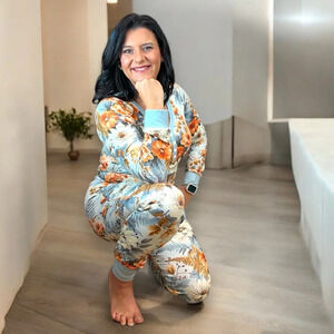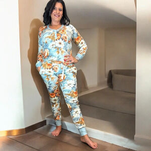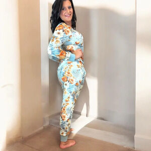 Transform your lounge wear with these adorable PJ sets! They come in a lovely light blue adorned with a charming boho fall floral pattern. You'll love the faux button neck and functional drawstring that add a cute touch. Plus, there's a handy pocket at the bottom—perfect for stashing small essentials. The fabric is stretchy and super comfy, making them ideal for lounging all day long. You'll appreciate the true-to-size fit, which hugs you just right without compromising on comfort. Made from 92% Polyester and 8% Spandex, they offer a wonderfully soft and lightweight feel. Whether you're cozying