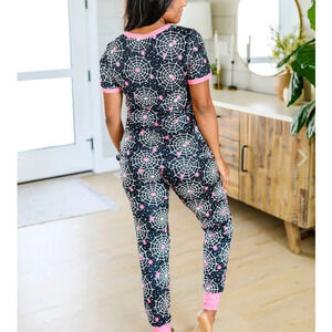 Transform your lounging experience with our adorable PJ set featuring a playful spiderweb print! These stylish PJs boast a cute faux button neck and a handy drawstring for a perfect fit. Plus, the pocket at the bottom is just right for stashing small essentials. Crafted from a stretchy and super comfy fabric, they're ideal for all-day wear. You can stick to your usual size for a relaxed fit or size down for a snugger feel. The fabric blend of 92% Polyester and 8% Spandex ensures a soft and light experience. Whether you're kicking back at home or catching up on some well-deserved sleep, these PJs will keep you feeling both cozy and chic!
