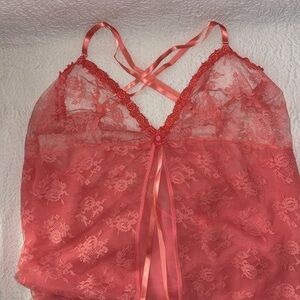 Shirley of Hollywood Intimate Attitudes 2 Piece Sheer Lace Gown Lingerie Set