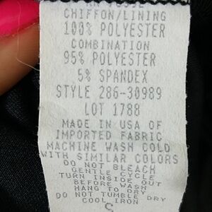 100% polyester chiffon and lining 95% polyester 5% spandex bodice