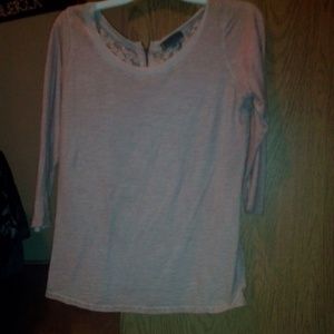 Baby pink all throughout has lace all in the back and has a zipper in the back elbow length sleeves