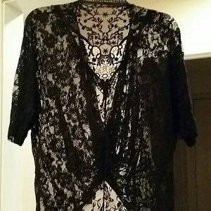 Lacey black shirt to wear over tank or blouse. Worn once. Drapey front.