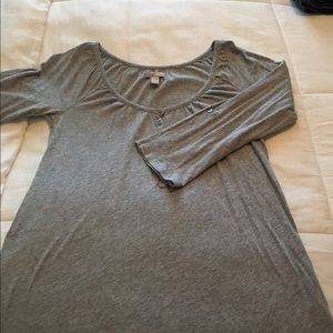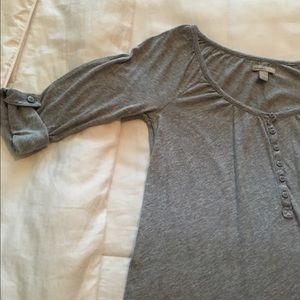 3/4 sleeve cotton top with the option to roll sleeves up. Loose fit around stomach, wore when I was pregnant.