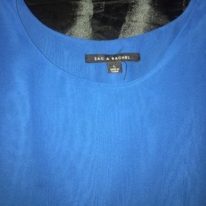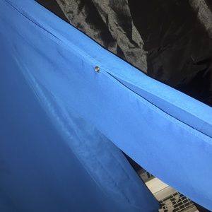 Really pretty blue shirt, there's a stain on front, cant really see it, it shows in first pic. Layers show in the bottom. The sleeves are pretty cool. All questions & offers are welcome.