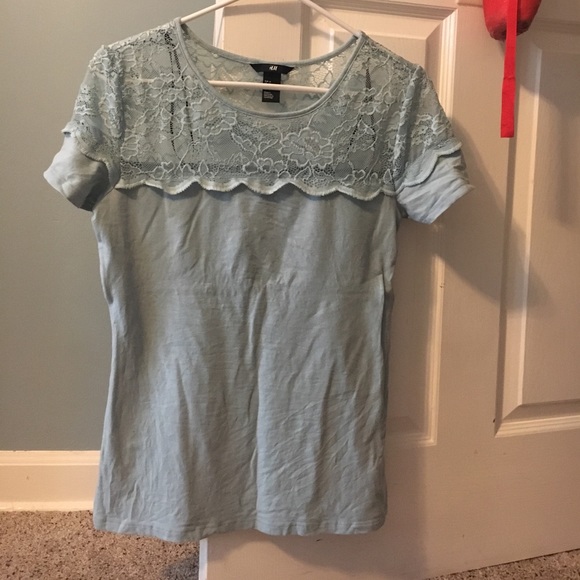 H&M light blue lace shirt! Size medium but could fit small too. Worn once !