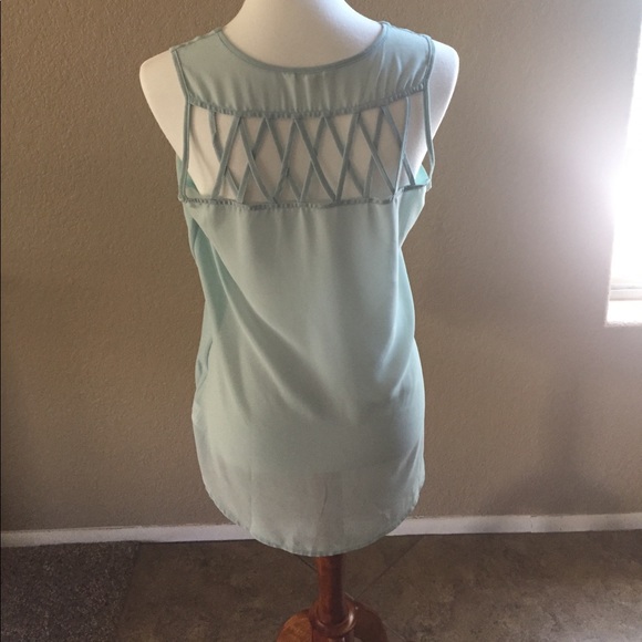 Sleeveless summer shirt sheer in the back extra lining in the front so it's not see through. Shorter in the front long in the back. Fun shirt to accessorize.