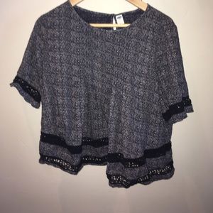 Floral shirt, lace on sleeves and bottom, 100% cotton