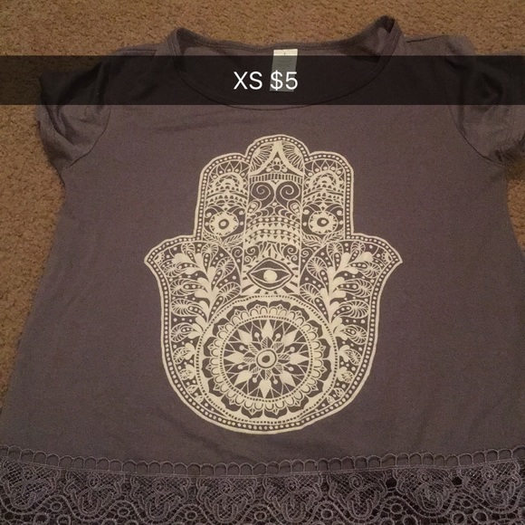 Short sleeved with white appliqué on it