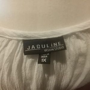 Beautiful white tank, loose fit, swingy. Lace detail. Very flattering. 24 inch length from neckline. One small flaw of frayed trim ( shown in picture).