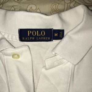 White and blue two button polo shirt with blue polo