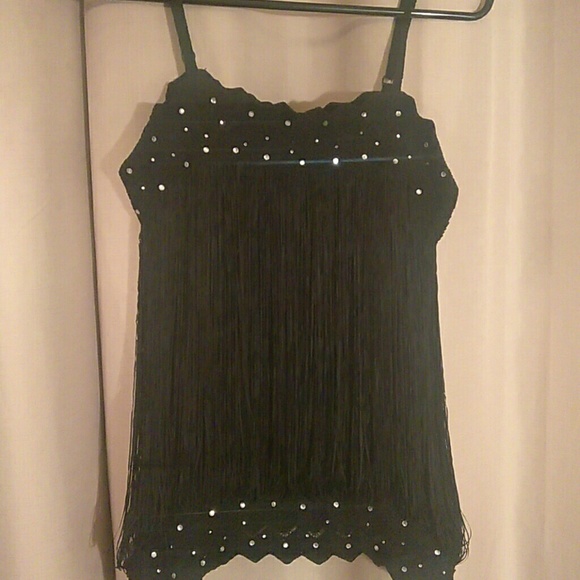 sleeveless black shirt with fringes