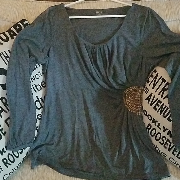 ana gray longsleve embellished shirt