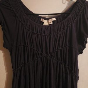 Navy blue short sleeve knit shirt. Adorable with shorts, crop pants or jeans.