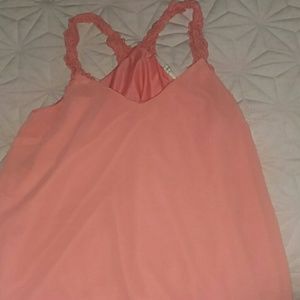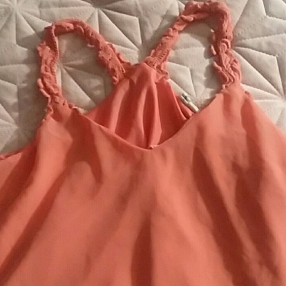 Coral chiffon lose fitted top with lacey straps