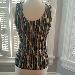 Stretchy 100% polyester tank blouse with pleats, form fitting, blue/cream/black/purple/gray