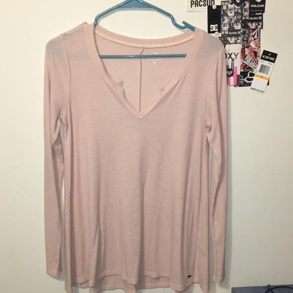Cute light pink long sleeve v neck hollister shirt.