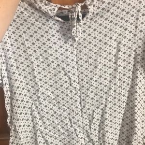 It’s black and white with lose sleeves. It’s has kinda like an eye pattern on it