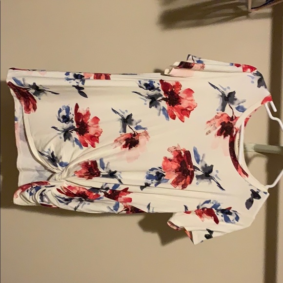 White floral shirt with front knot