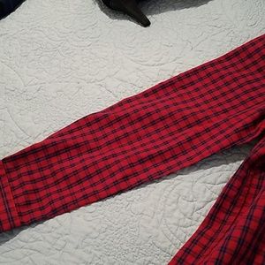 It is a long sleeve red with blue stripes