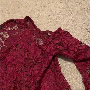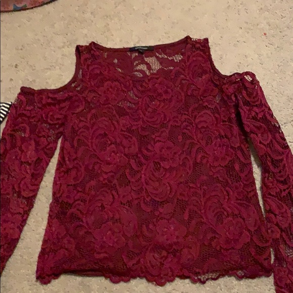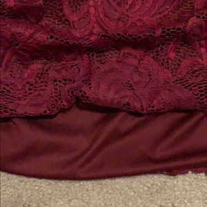 Burgundy See-through shirt and underneath has a undershirt