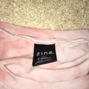 Pink tie- dye shirt. Pocket on front. Shirt sleeve.