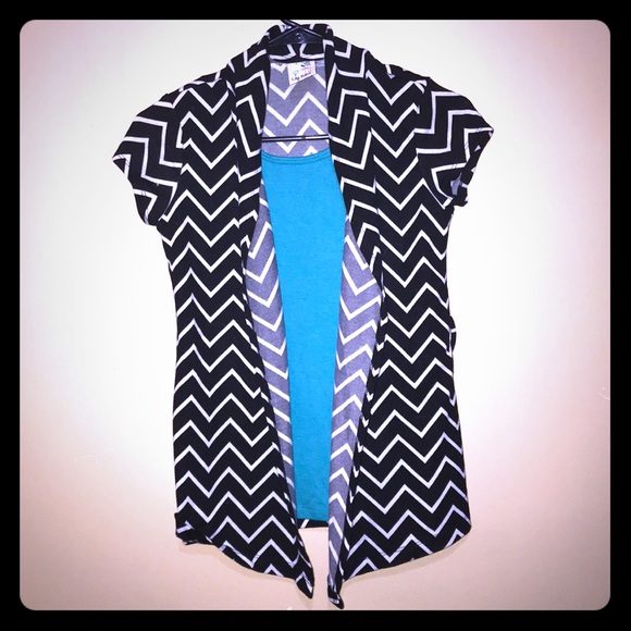 Black and white shirt with attached green inner cami