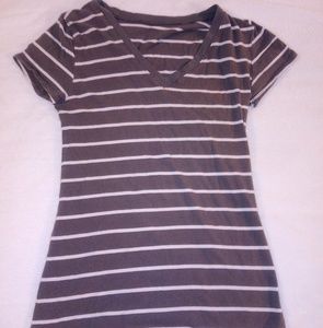 Short v neck, grey with white strips, long, short sleeve