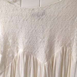 Ivory tunic shirt. Has lace throughout the shirt. Size medium but fits like a large. Never been worn.