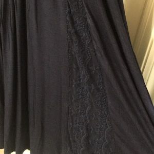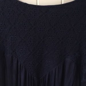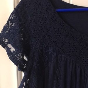 Navy blue tunic shirt with lace details. Very soft and pretty. Size medium but fits like a large.