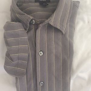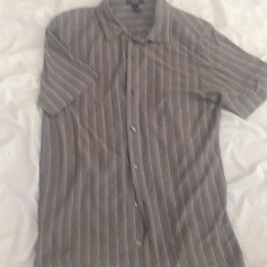 Men’s Alfani short sleeve. Size is Medium. Stripes are gray with a thin yellow. Coming from a pet and smoke free home