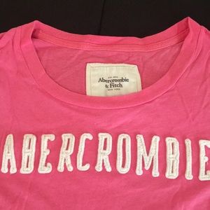 Pink Abercrombie shirt with white lettering. Worn but in good condition.