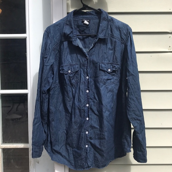 Denim button up shirt! Super soft! Some built in wrinkles for a rustic shabby chic look! Literally worn once!!