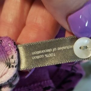 Black and purple tie dye cotton blouse v-neck sleeves are lace see-through and silver accents on the front gently worn