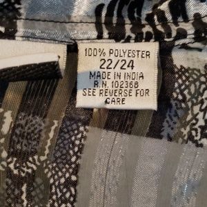 Black gray silver multi print blouse button-down black tank underneath as a shell