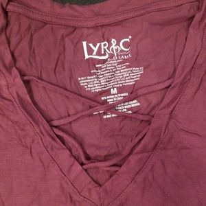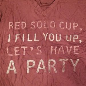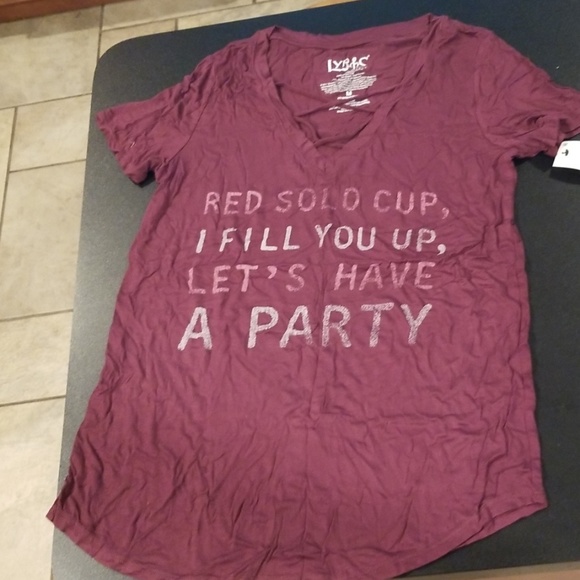LYRIC Culture Red Label, size Medium, Color Maroon, v neck with criss cross at chest....reads "RED SOLO CUP, I FILL YOU UP, LET'S HAVE A PARTY". NEW with tag attached.