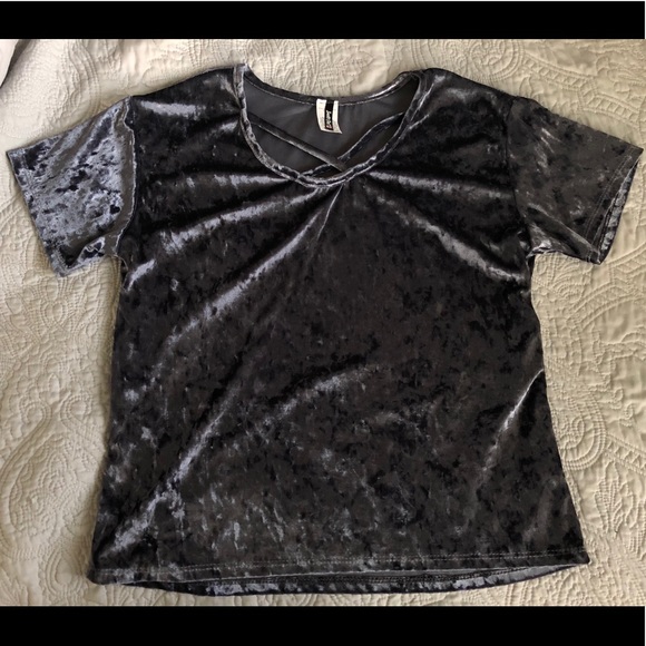 Crushed blue velvet cross front tee lightly worn