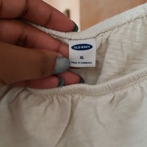Off the shoulder shirt with stitching detail around the bottom of the collar. Item will be ironed before shipped.