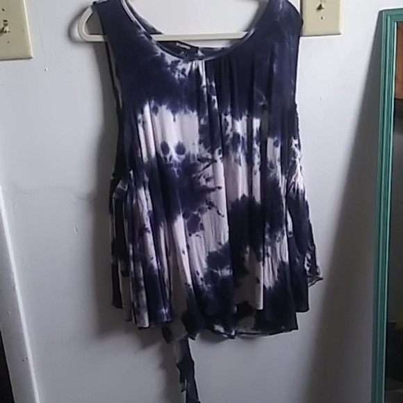 Ocean blue and white open sleeve willowy shirt with strings to tie for a better fit