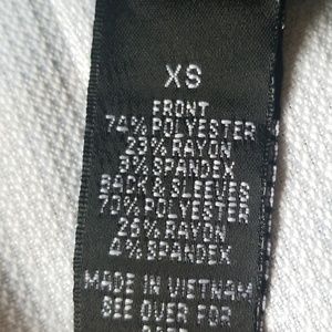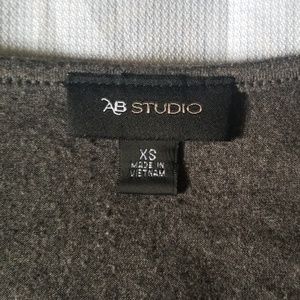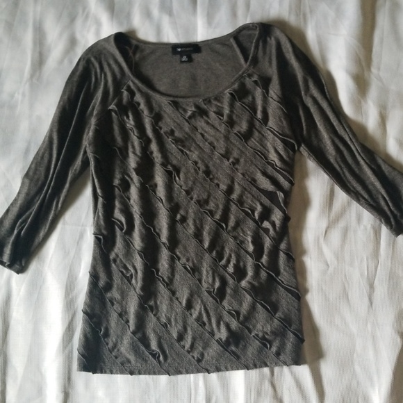 Comfy, jersey material that looks dressed up. Ruffles in front, plain grey jersey material in the back. Worn once or twice.