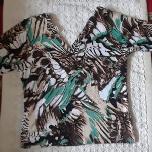 Print shirt with shades of green and brown